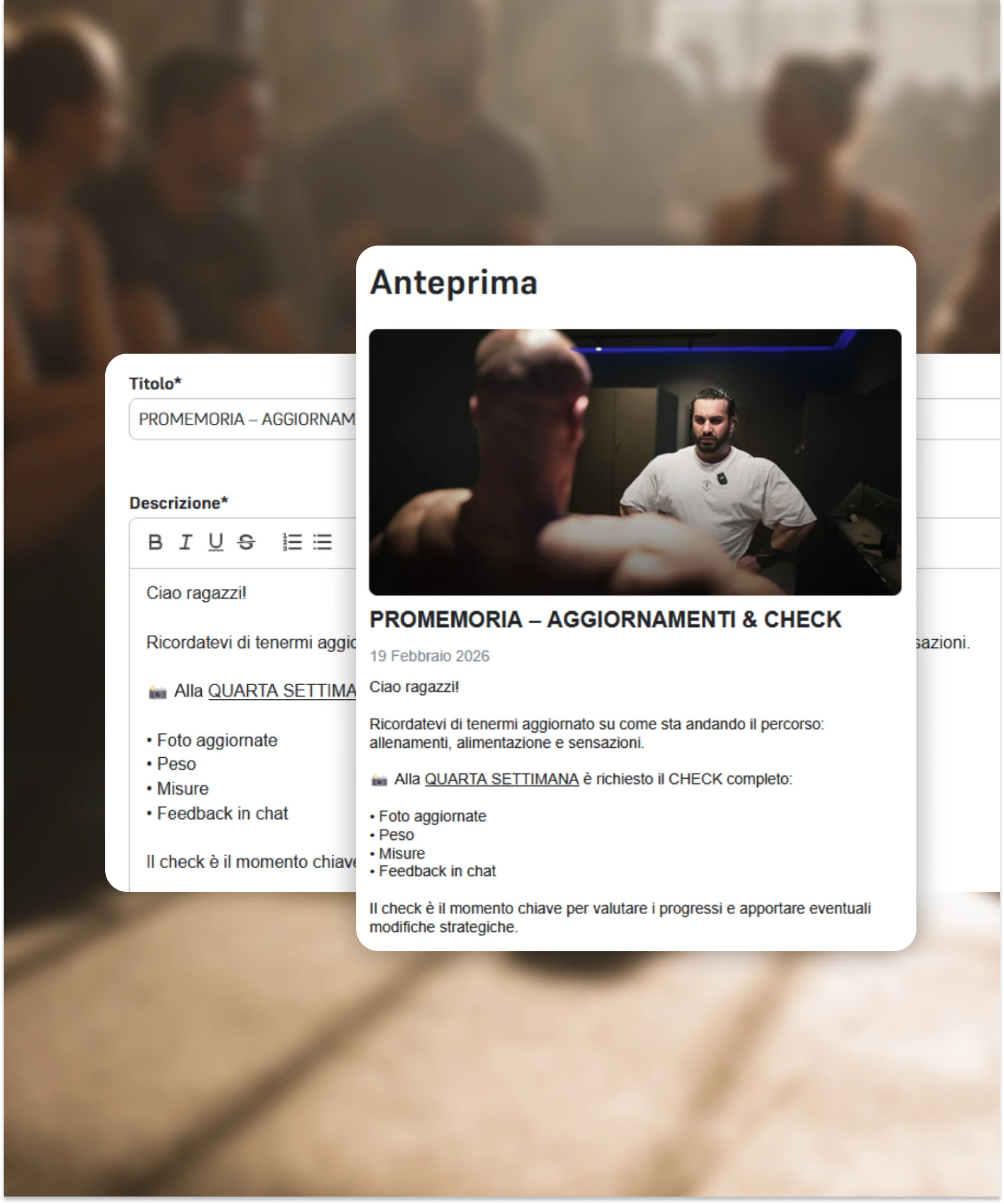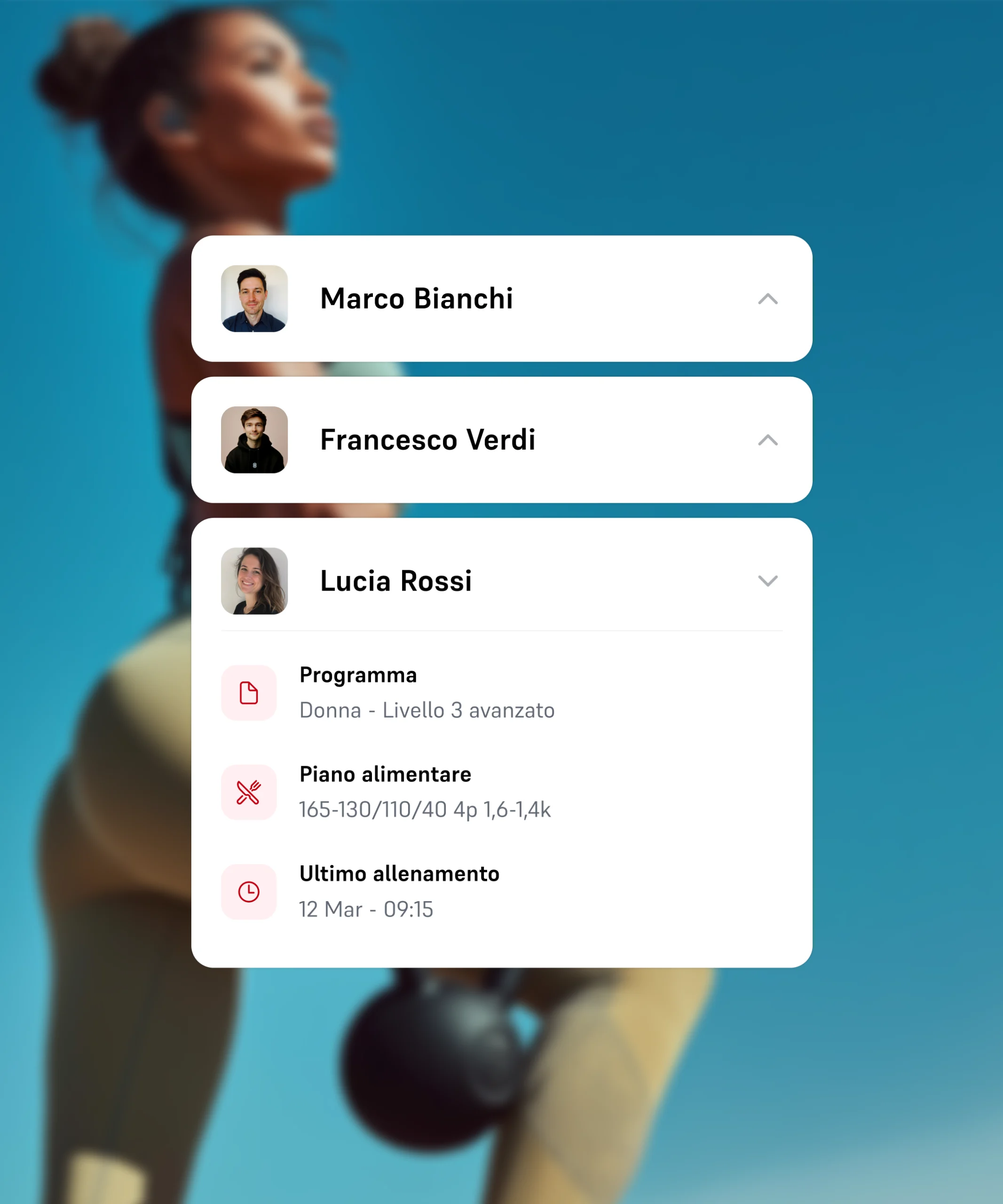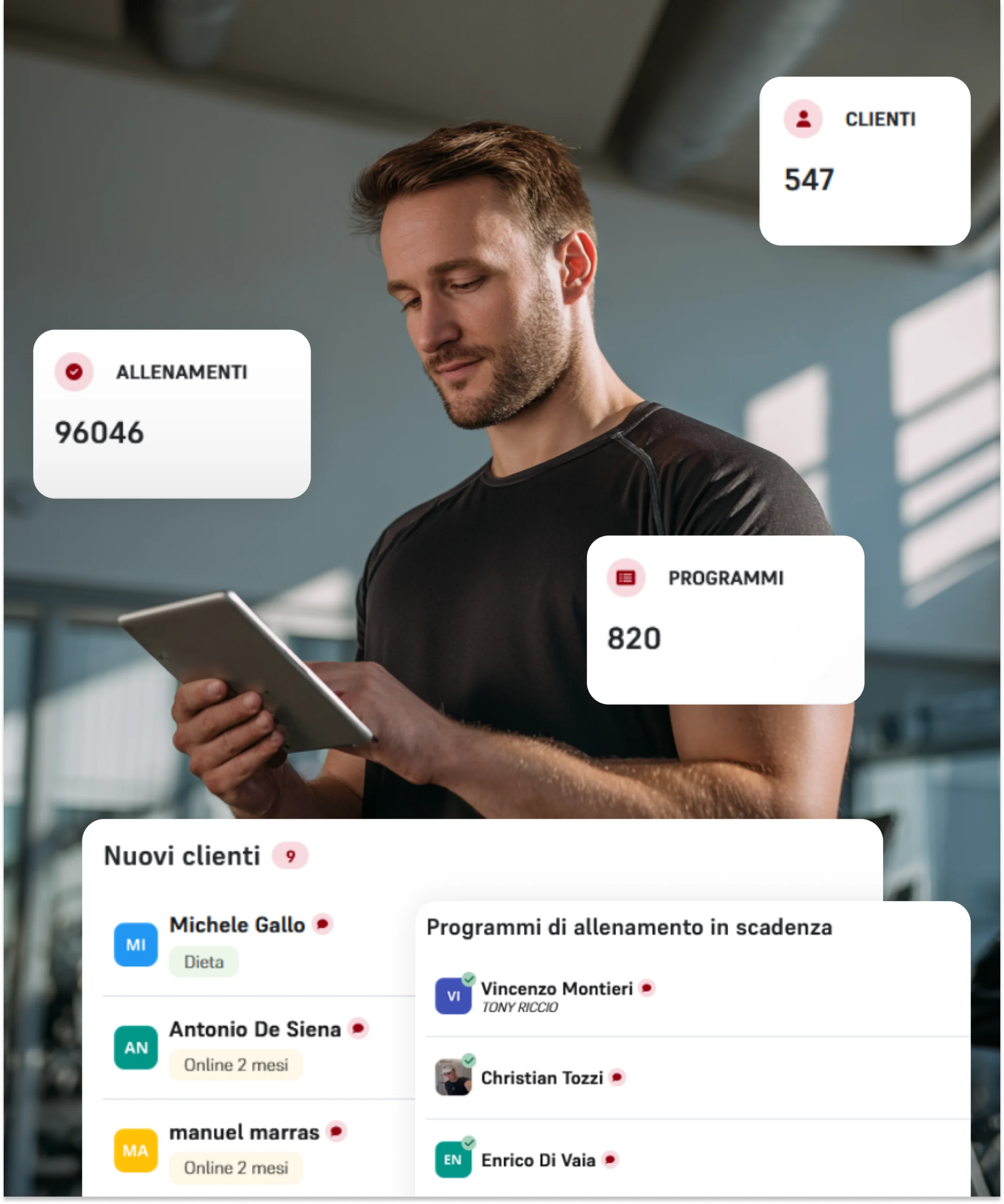 Il software modulabile che rende più efficace, veloce e professionale la gestione dei clienti e l’erogazione del servizio di coach e personal trainer.
